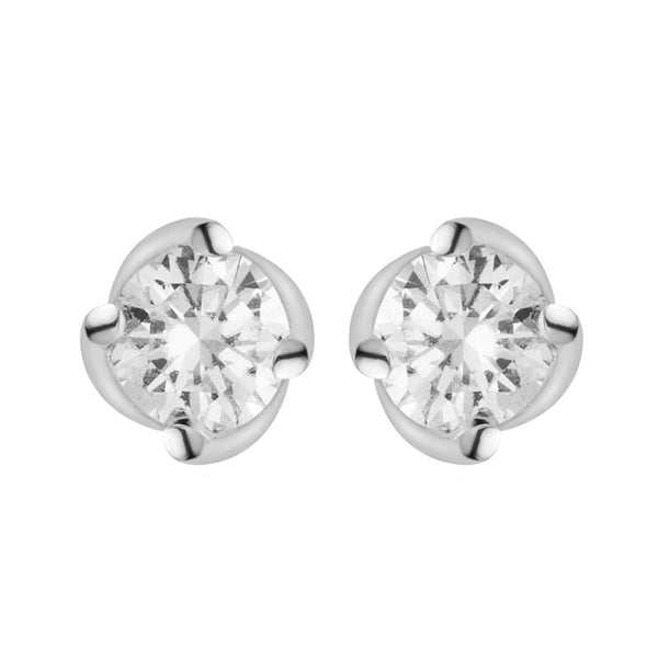 18ct White Gold Round Cut Diamond Solitaire Stud Earrings