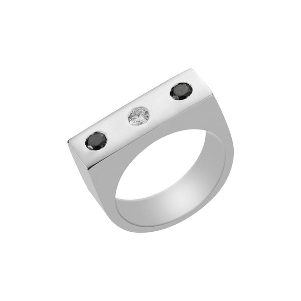18ct White Gold Diamond & Treated Black Diamond Square Ring