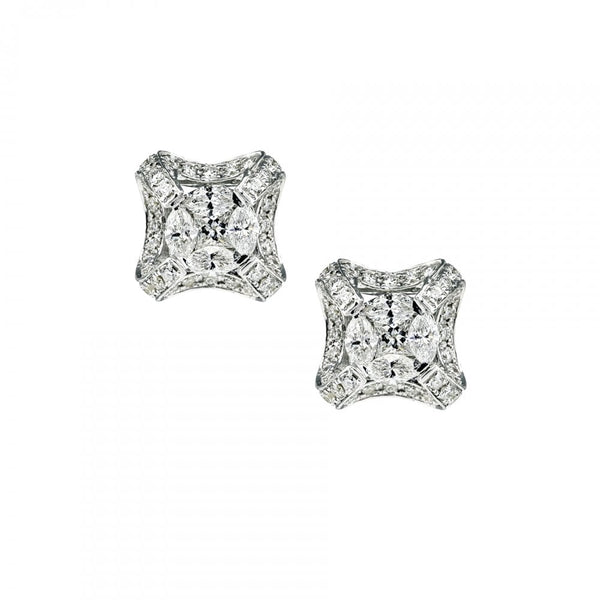 18ct White Gold Mixed Cut Diamond Fancy Stud Earrings