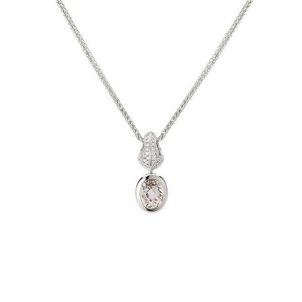 18ct White Gold Oval Cut Kunzite & Diamond Necklet
