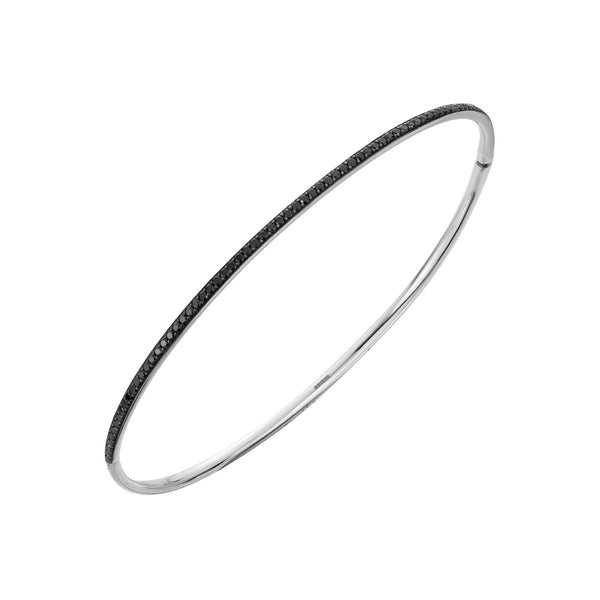 18ct White Gold Round Black Diamond Hinged Bangle 0.59ct