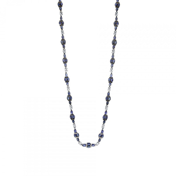 18ct White Gold Sapphire & Diamond Long Chain, Two Hundred Marquise Sapphires Claw set, Total Weight 29.91ct, Fifty Round Brilliant Cut Diamonds, Total Diamond Weight 3.86ct, Thirty Four Inches Long