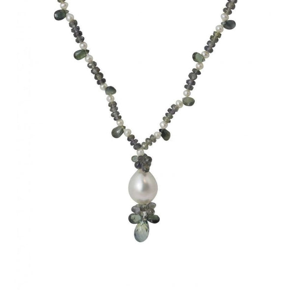 18ct White Gold South Sea Pearl & Sapphire Beaded Pendant