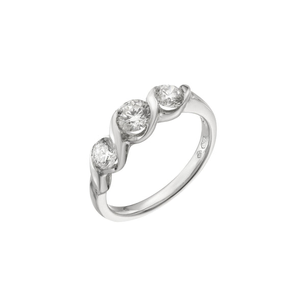 Three Round Brilliant Diamonds Set in a Rubover Wave.