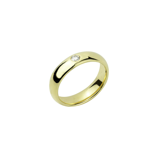18ct Yellow Gold Heavy Court Wedding Band Set With A Round Brilliant Diamond,