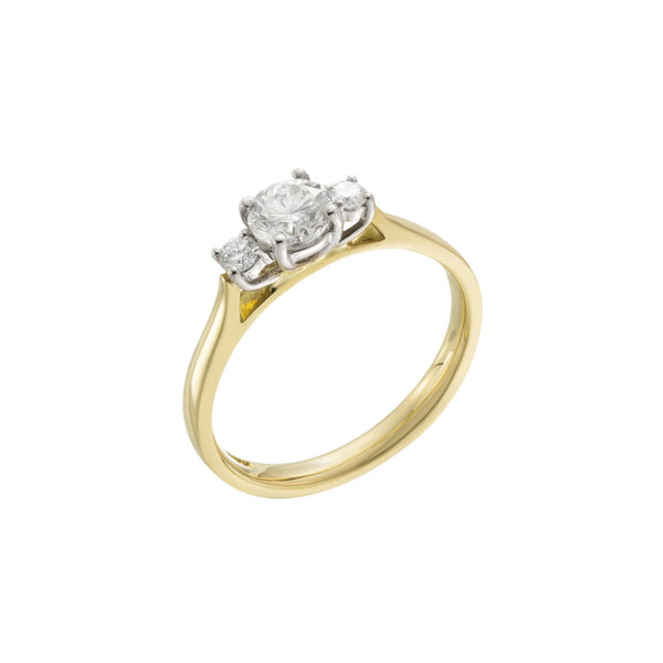 18ct Yellow & White Gold Round Cut Diamond Three Stone Ring