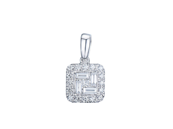 18ct White Gold Diamond Invisible Set Cluster Pendant
