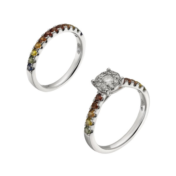 18ct White Gold Multicoloured Sapphire Cluster Set Ring