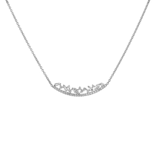 18ct White Gold Diamond Set Double Row Bar Set Necklace With Fixed Chain