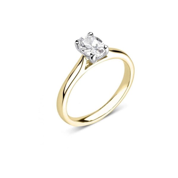 18ct Yellow Gold and Platinum Oval Cut Diamond Solitaire Ring