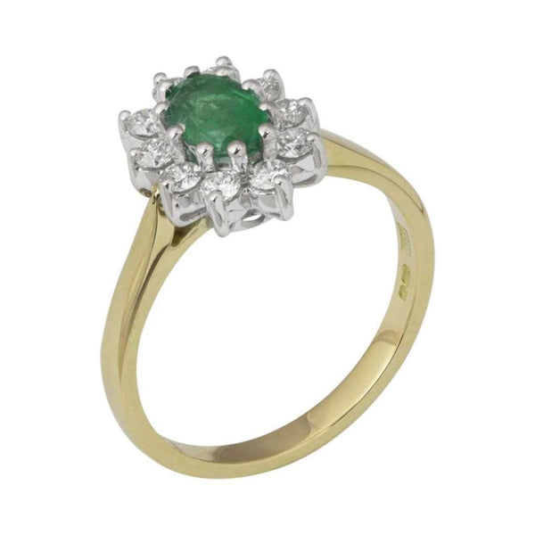 18ct Yellow White Gold Diamond & Emerald Cluster Ring