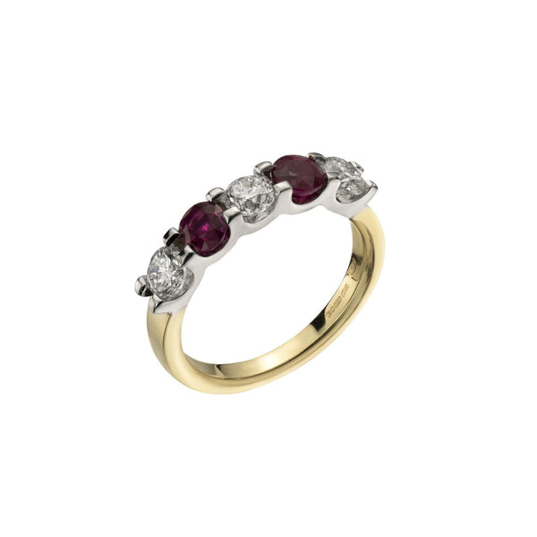 18ct Yellow Gold Ruby & Diamond Five Stone Ring