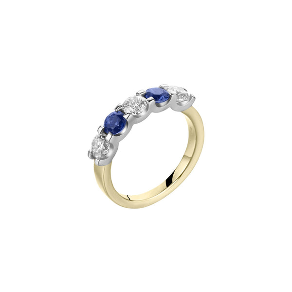 18ct Yellow Gold Sapphire & Diamond Five Stone Ring