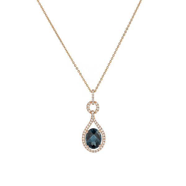 9ct Rose Gold Diamond & London Blue Topaz Pendant