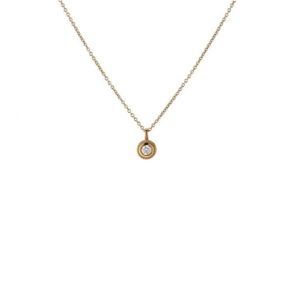9ct Rose Gold Solitaire Diamond Pendant with Chain, Rubover Set With Beaded Edge, Diamond Weight 0.07ct, Chain 16"Long