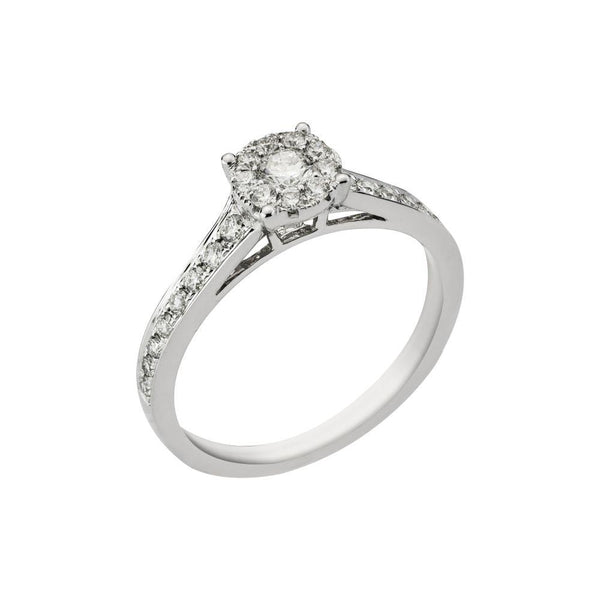 9ct White Gold Round Cut Diamond Illusion Set Cluster Ring With Diamond Set Shoulders