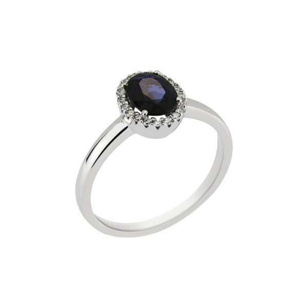 9ct White Gold Diamond and Blue Sapphire Oval Dress Ring
