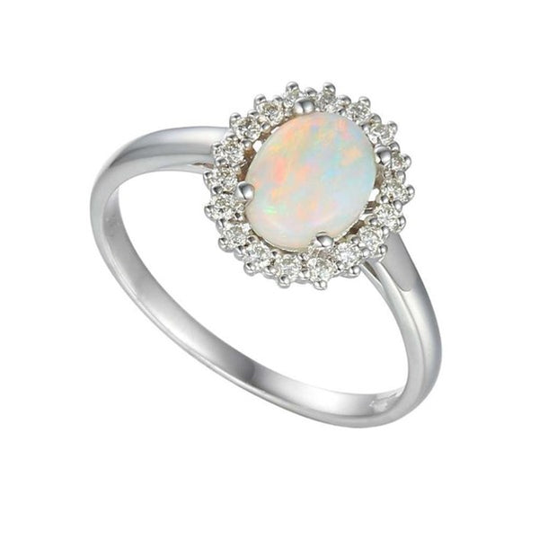 9ct White Gold Diamond and Opal Halo Dress Ring