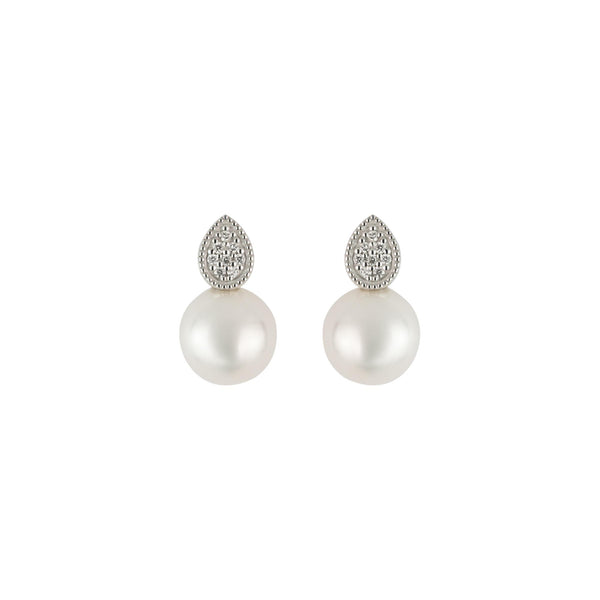 9ct White Gold Diamond & Freshwater Pearl Stud Earrings