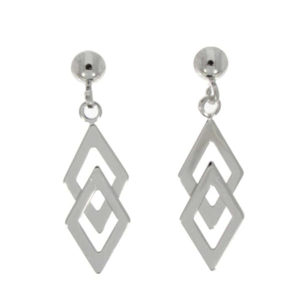 9ct White Gold Double Diamond Shaped Drop Earrings