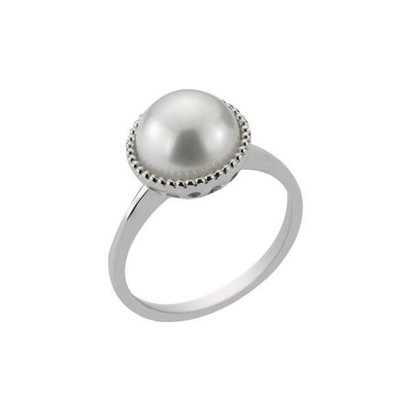 9ct White Gold Freshwater Button Pearl Dress Ring
