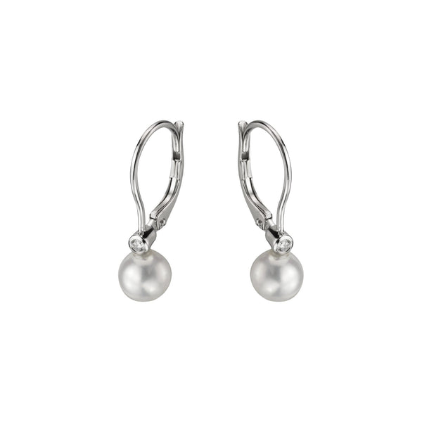 9ct White Gold Freshwater Pearl & Diamond Hoop Earrings