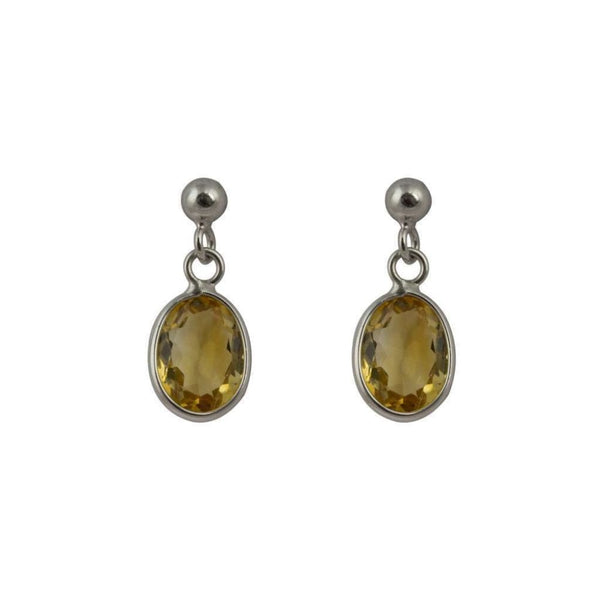 9ct White Gold Oval Citrine Drop Earrings,Rubover Set.
