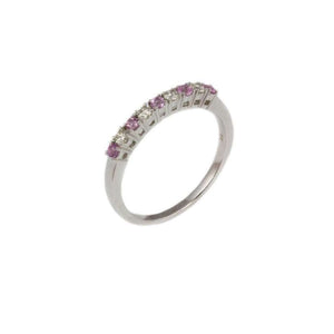 9ct White Gold Pink Sapphire & Round Cut Diamond Ring