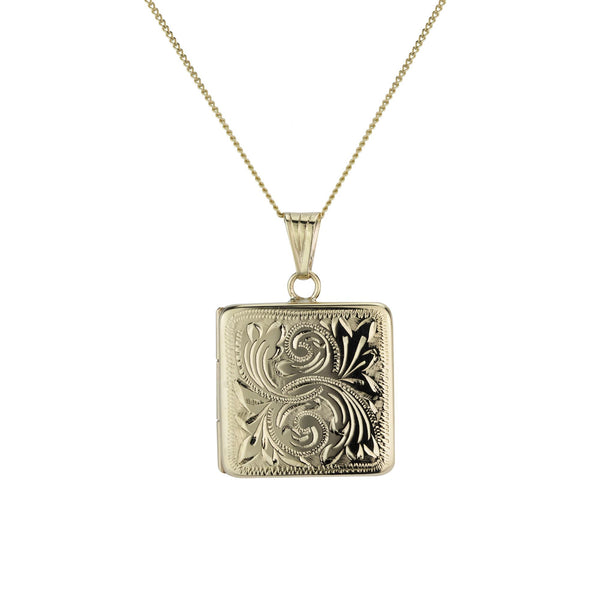9ct Yellow Gold 22mm Square Engraved Locket