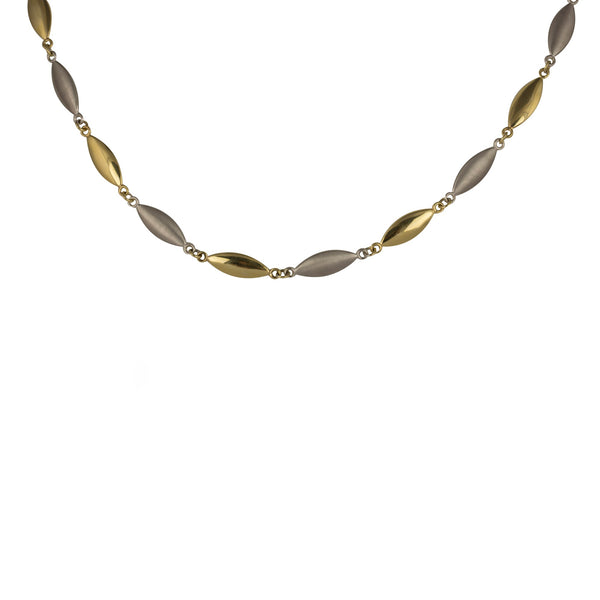 9ct Yellow and White Gold Satin Polished Marquise Link 18" Necklace