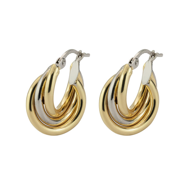 9ct Yellow and White Gold Three Strand Twist Hoop Earrings