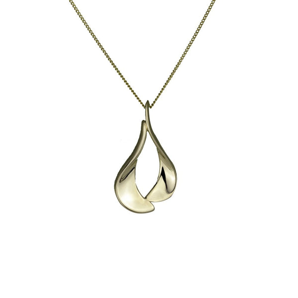 9ct Yellow Gold Concave Open Teardrop Pendant with 18" Chain
