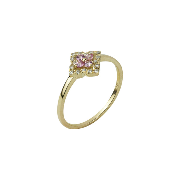 9ct Yellow Gold Pink Sapphire & Diamond Flower Dress Ring