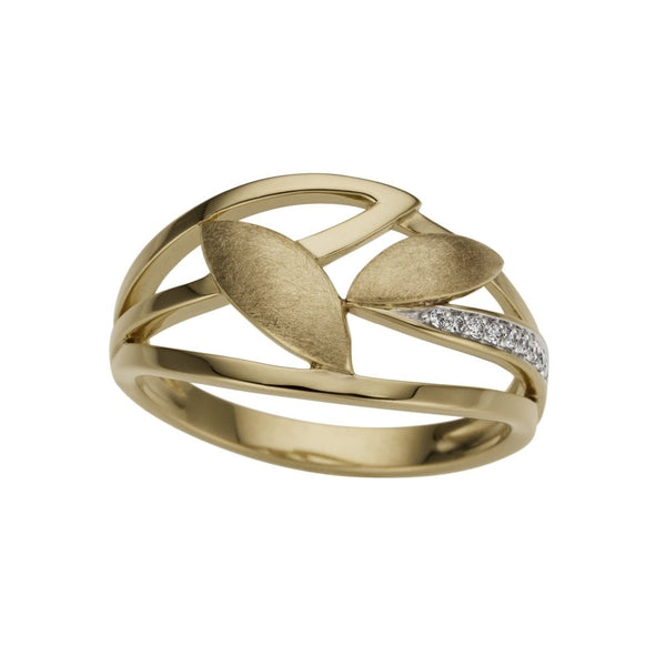 9ct Yellow Gold Diamond Satin & Polished Dress Ring
