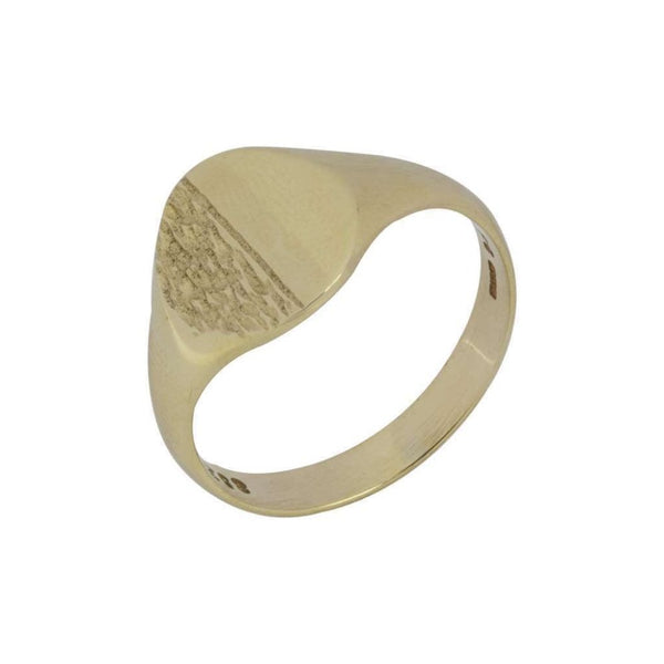 9ct Yellow Gold Half Textured And Half Polished Oval Signet Ring,