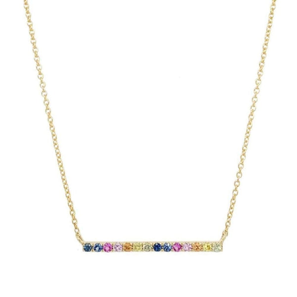 9ct Yellow Gold Multi Sapphire Bar Necklace on 16"-18" Chain