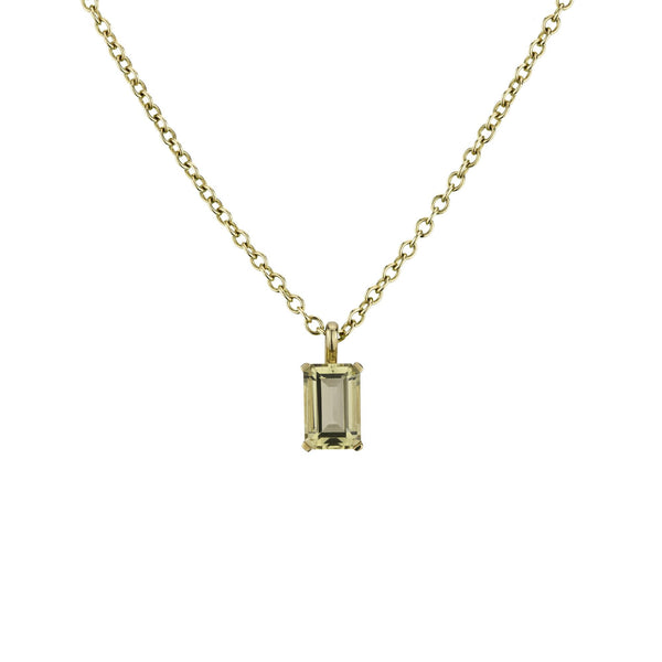9ct Yellow Gold Oblong Lemon Quartz Pendant, Claw Set, Length: 8.5"