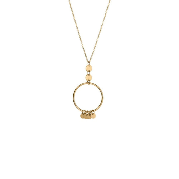 9ct Yellow Gold Open Circle with Disc Droplets on 16"-18" Chain