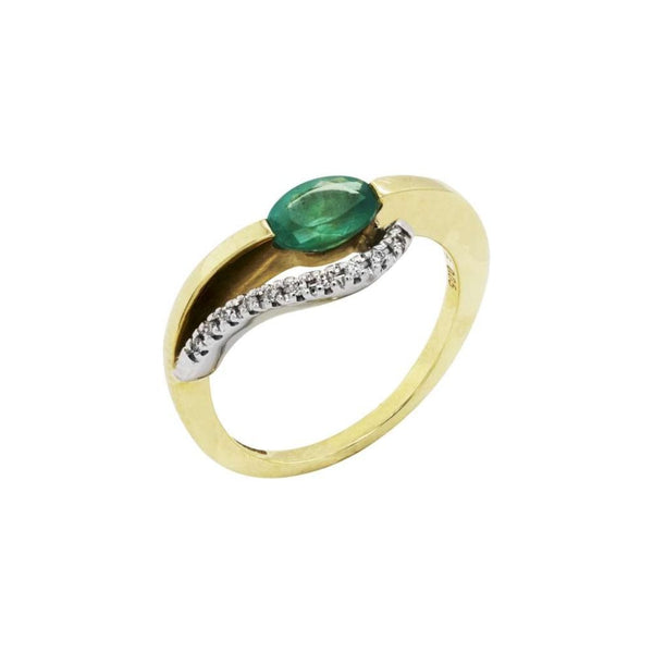 9ct Yellow Gold Oval Emerald & Diamond Dress Ring
