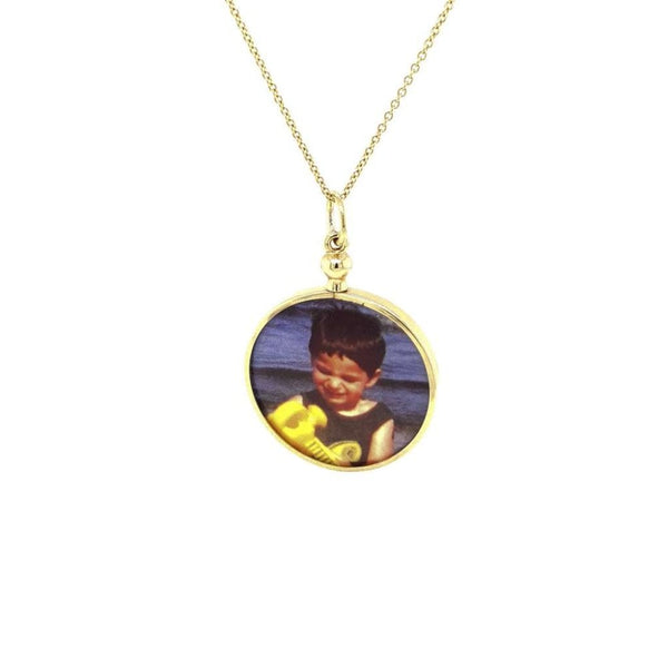 9ct Yellow Gold Round Photoframe Pendant on 16" Chain, Diameter 27mm 3mm Depth