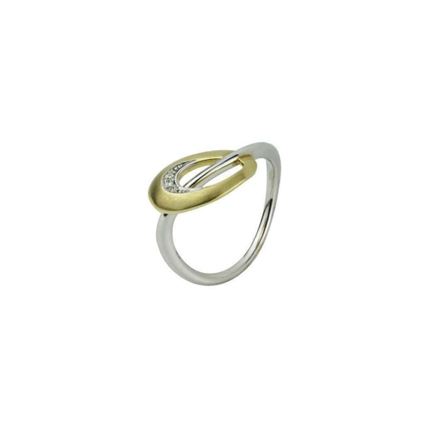 9ct Yellow & White Gold Diamond Set Satin Oval Dress Ring