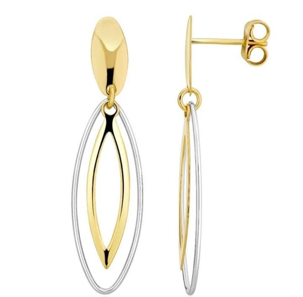 9ct Yellow & White Gold Open Marquise Earrings
