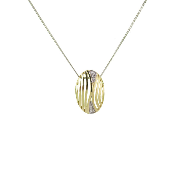 9ct Yellow & White Gold Satin Polished Diamond Set Pendant