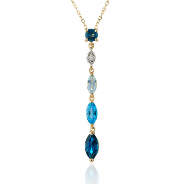 9ct Yellow Gold Diamond and Blue Topaz Pendant
