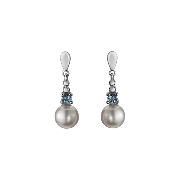 9ct White Gold Blue Topaz & Freshwater Pearl Drop Earrings