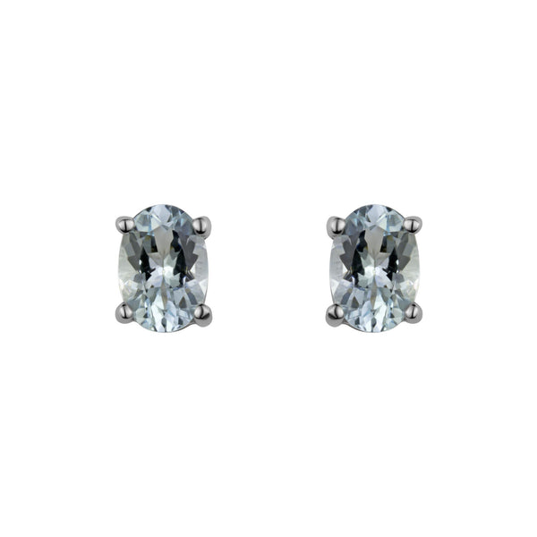 9ct White Gold Oval Aquamarine Claw Set Stud Earrings