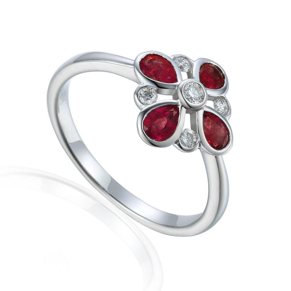 9ct White Gold Ruby & Diamond Cluster Dress Ring