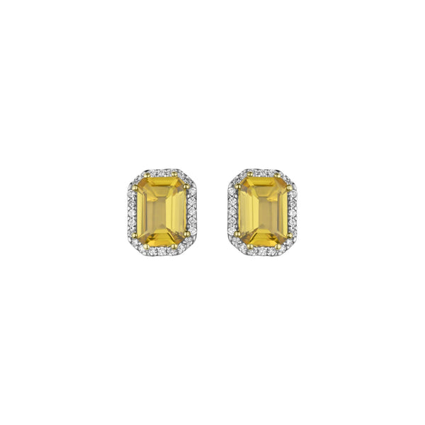 9ct Yellow Gold Rectangular Citrine & Diamond Halo Stud Earrings