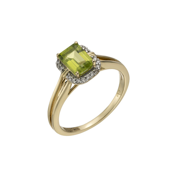 9ct Yellow Gold DIamond & Peridot Cluster Ring