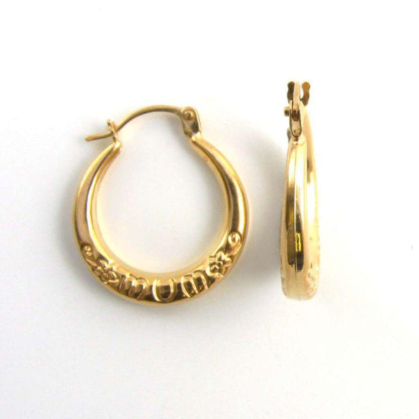 9ct Yellow Gold "MUM" Patterned Hoop Earrings
